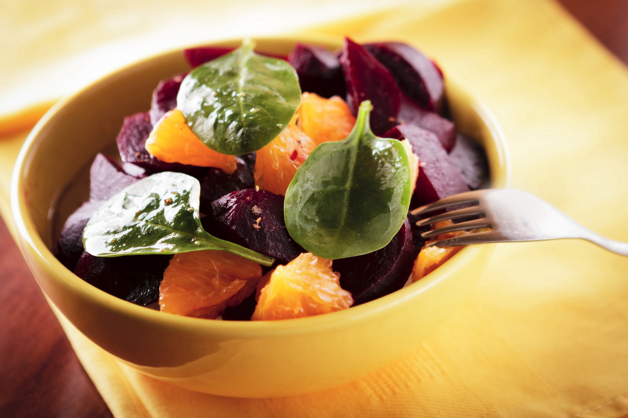 Such a beautiful salad! Beets, oranges, pecans and mint, topped off with a simple vinaigrette.
