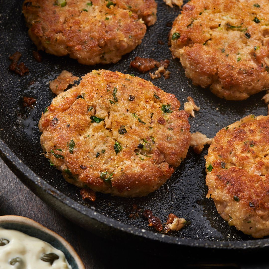 Gently add tuna cakes to skillet and cook until golden brown on one side.