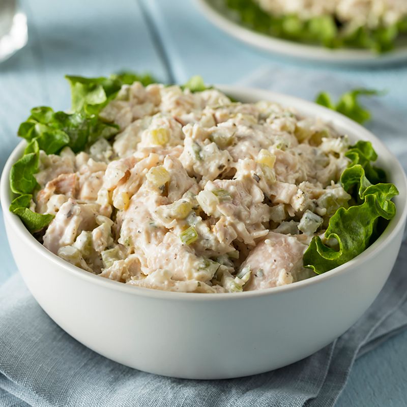 Ensalada de Pollo, or Mexican chicken salad, is loaded with tender chicken, crispy veggies and a spicy-tangy jalapeno Greek Crema – perfect on tostadas, in a wrap or with homemade tortilla chips.