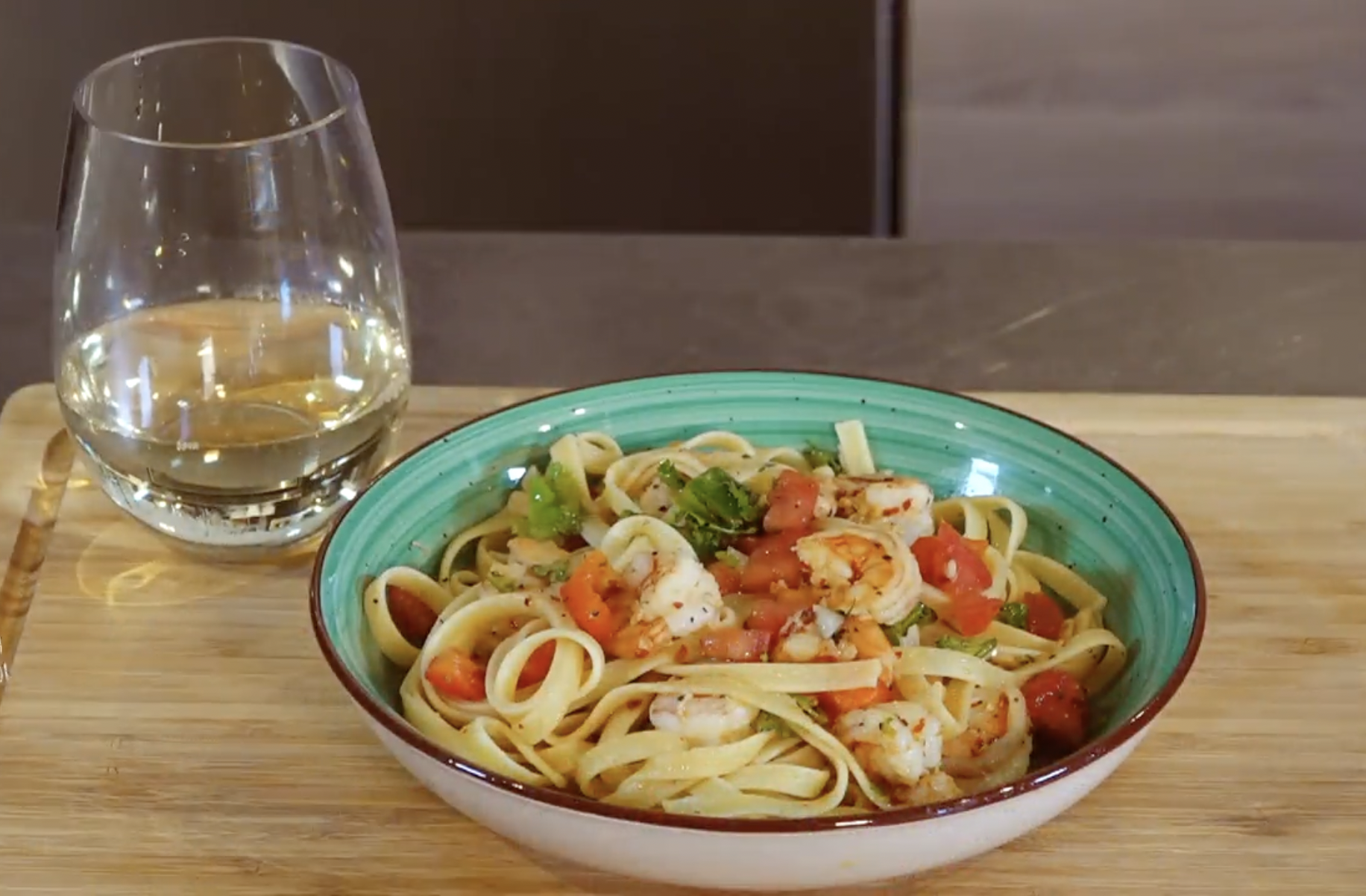 Here’s a quick, simple, and delicious meal. Fresh pasta, shrimp, pico de gallo, lime, cilantro, and some pepper flakes… Give this one a try! For the wine drinkers, a Pinot Grigio makes a perfect pairing.
