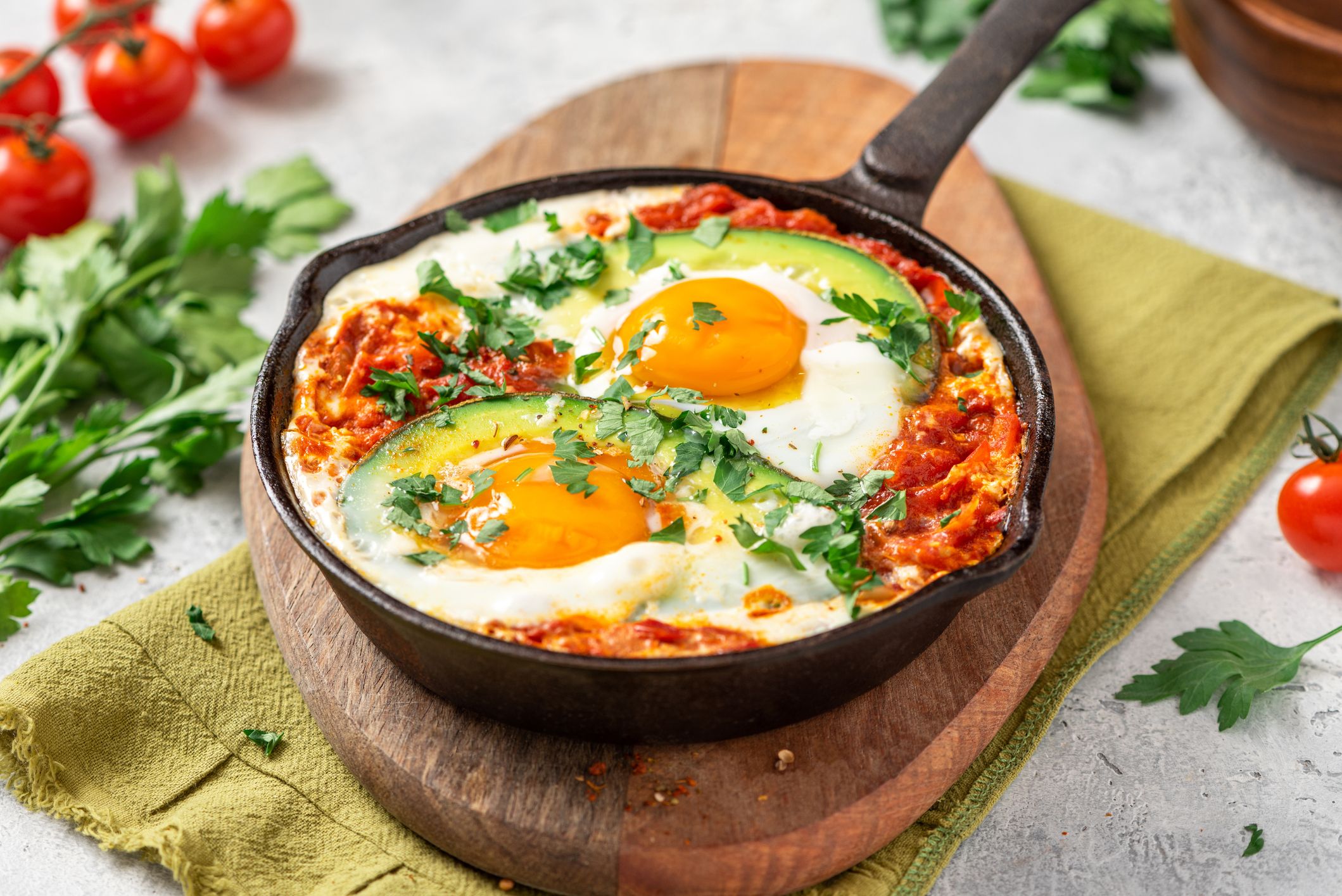 Crack the eggs directly into the tomato mixture, being careful not to break the yolk.