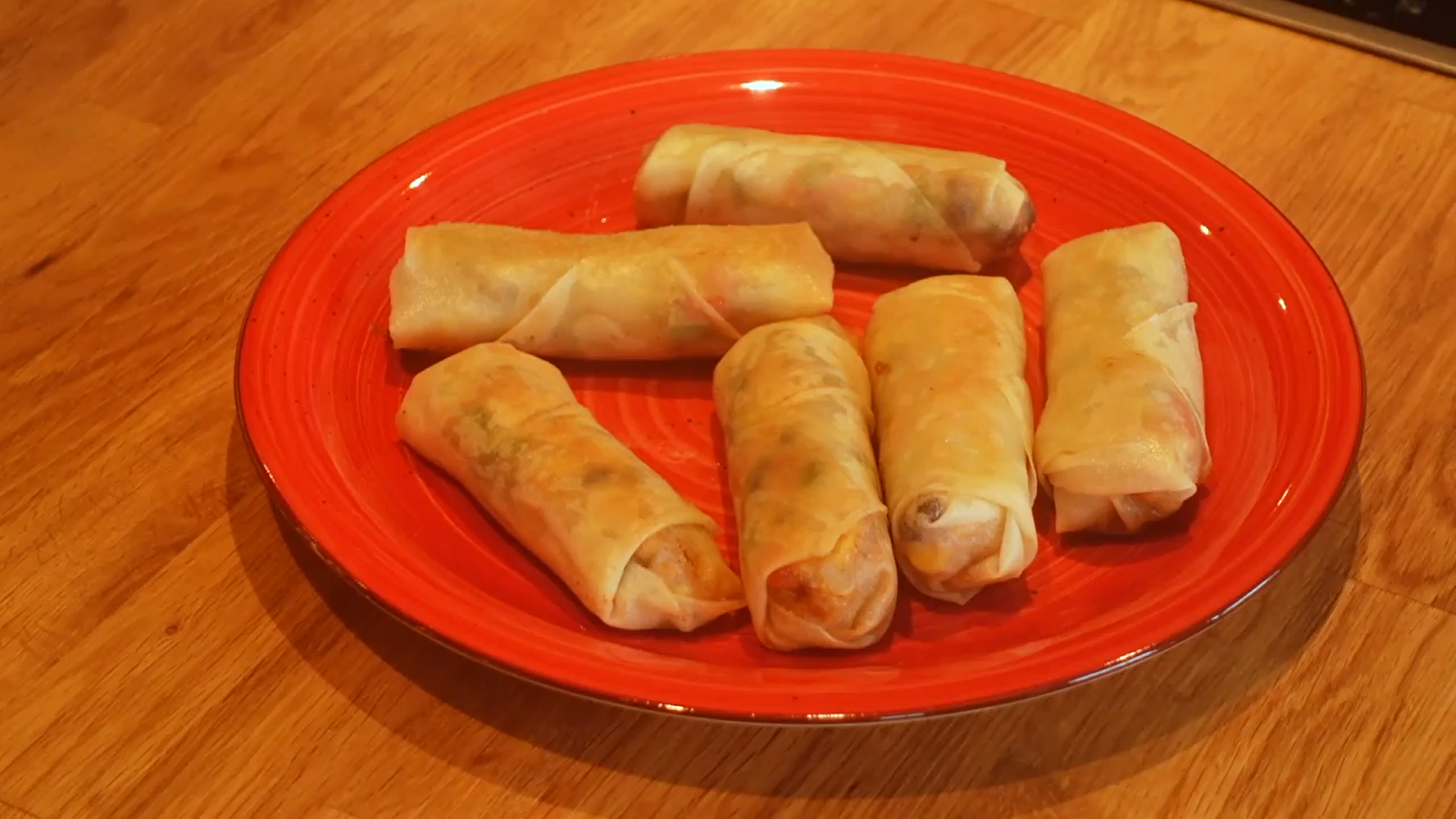 In a large skillet add the oil until it is about an inch up the side of the pan and heat to medium high. Add the spring rolls and fry for about 1-2 minutes and then flip and cook until they are golden brown. Serve with favorite dipping sauce.