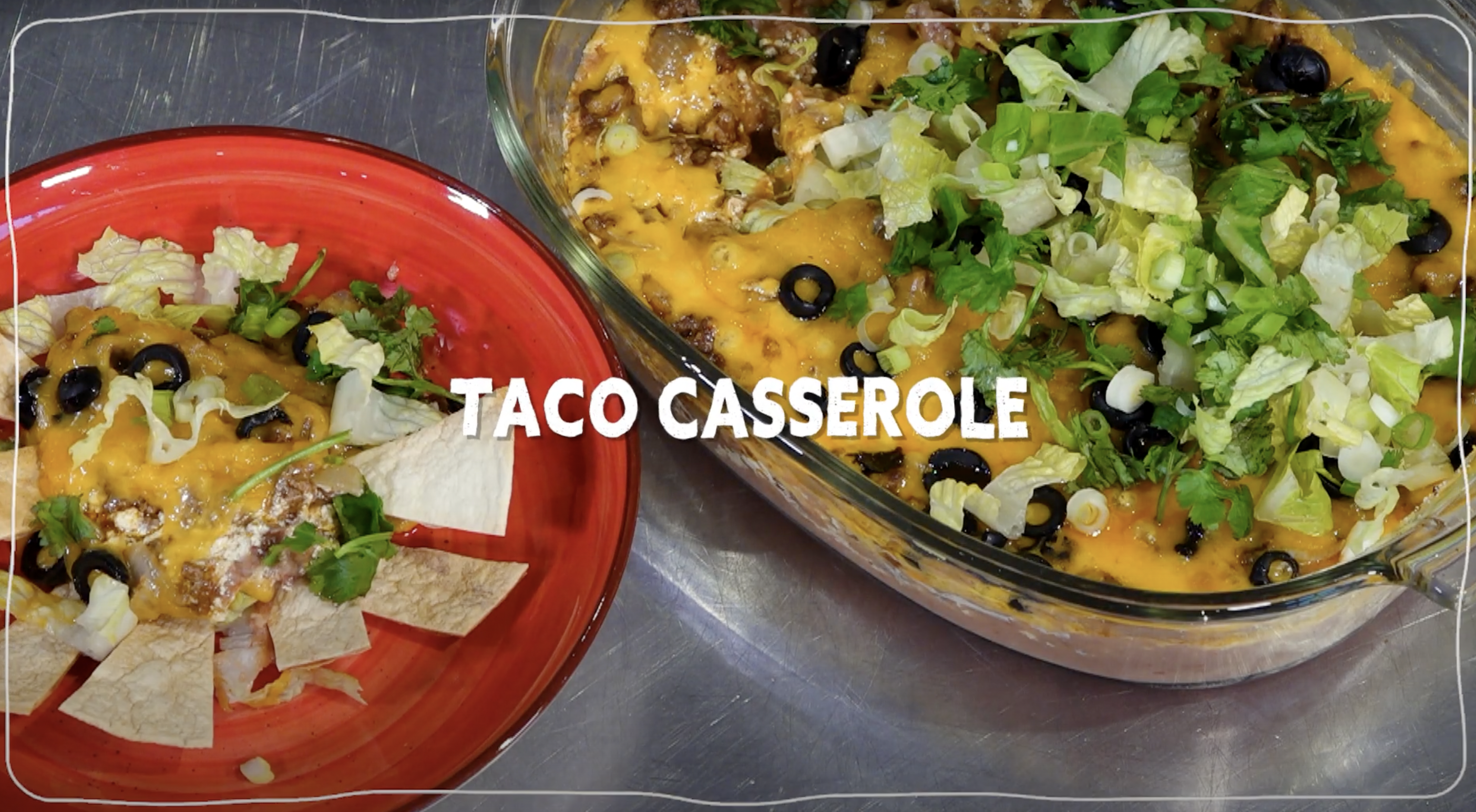 Taco night meets cold season comfort food in this cozy recipe for taco casserole featuring all your favourite taco fixings.