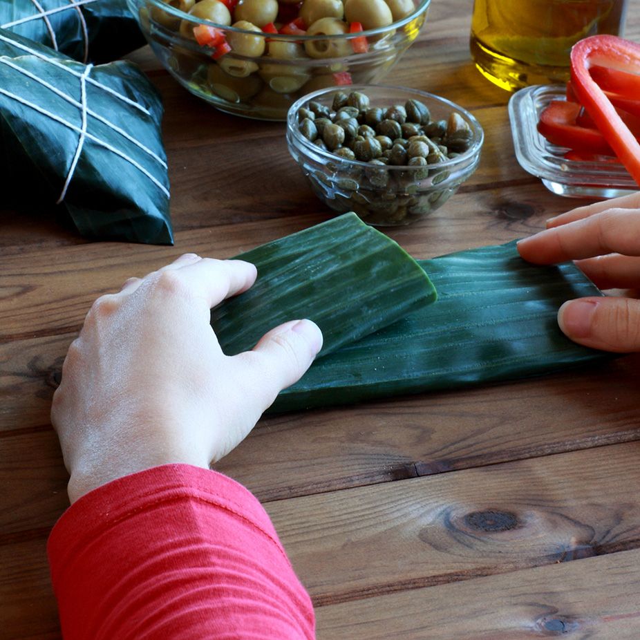 Banana leaves may be brittle and tear when you try to fold them. One way I’ve heard of to soften them is to soak them in warm, salted water for about an hour.